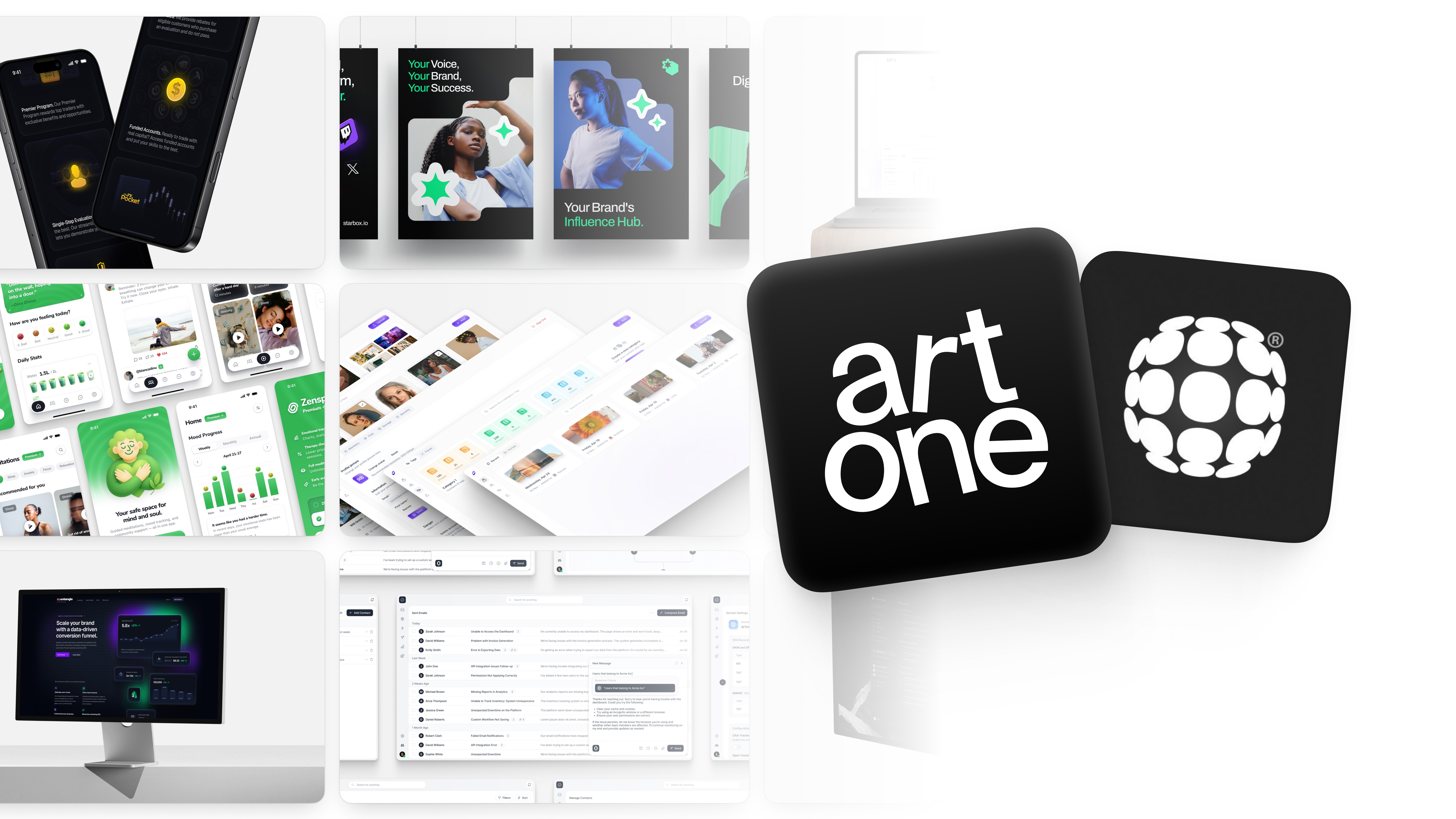 Studio Sphere is a design and branding studio offering product design, brand identity, animation, and campaign work. Their ongoing subscription starts at $12,000 per month, with a $6,000 two-week trial option. They work with founders and ambitious brands, with a portfolio leaning toward fintech, Web3, and health apps.