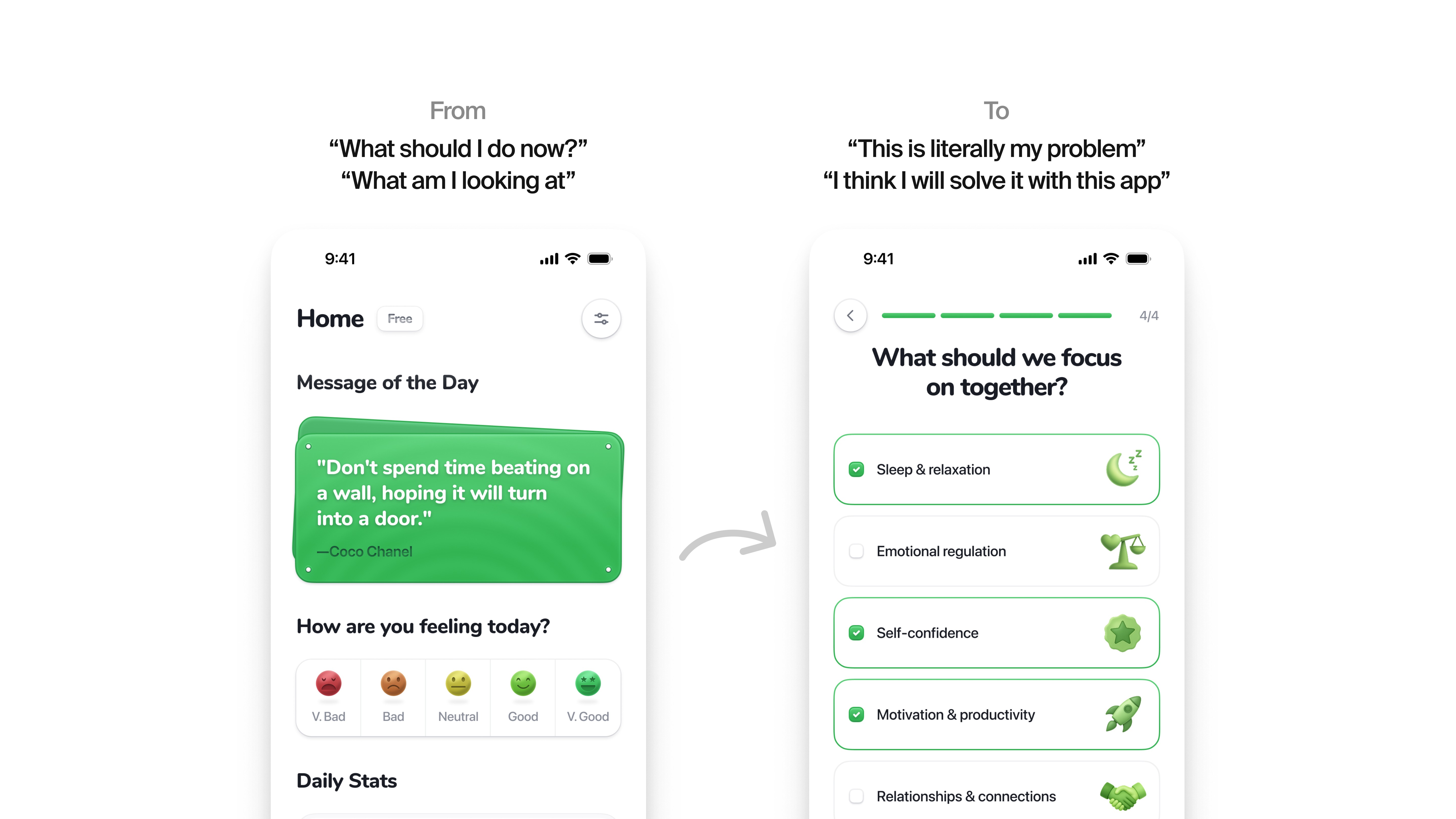 If your onboarding then mirrors that problem back at them, with the right copy and a tailored first experience, you create a strong moment of recognition.