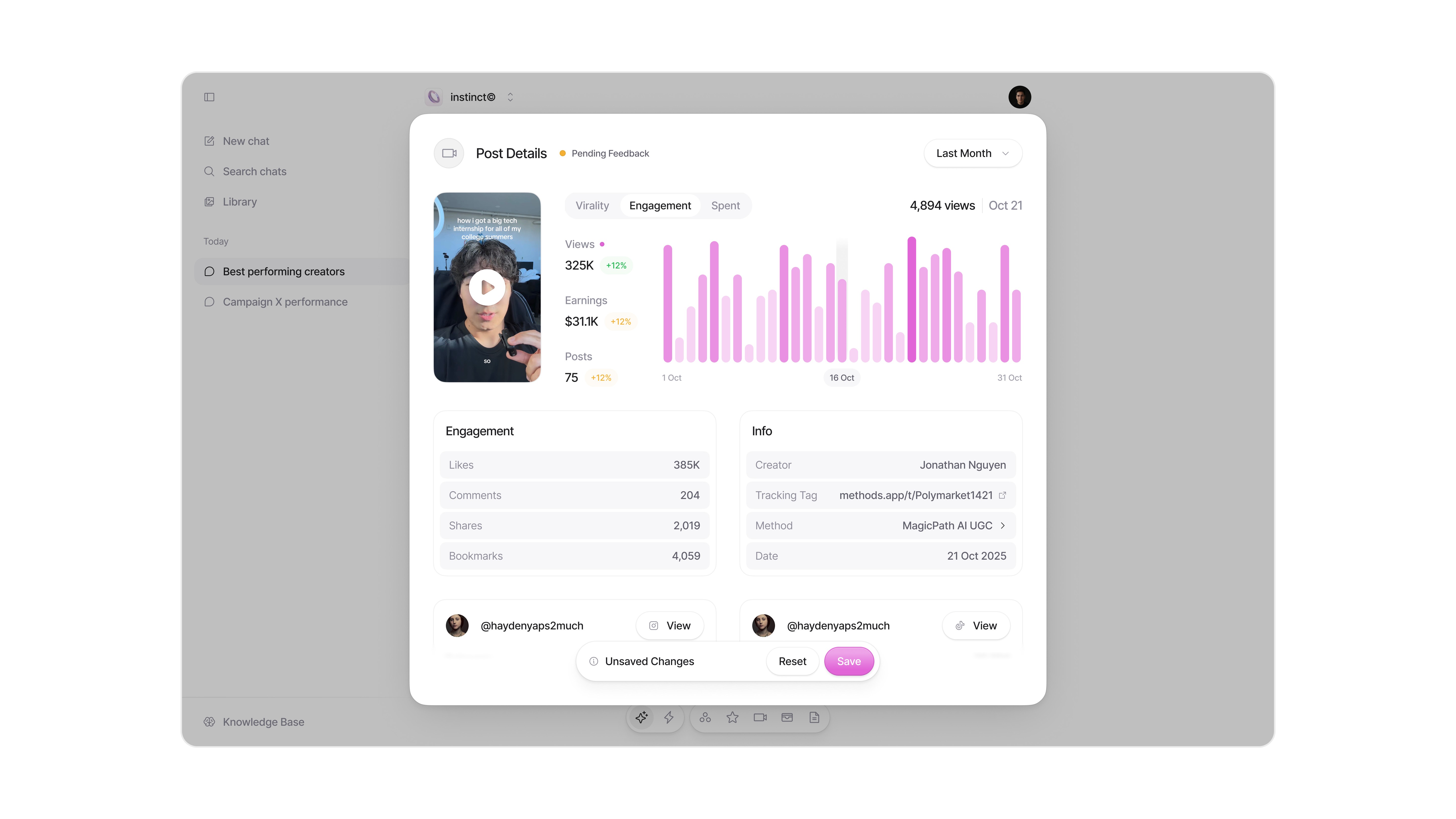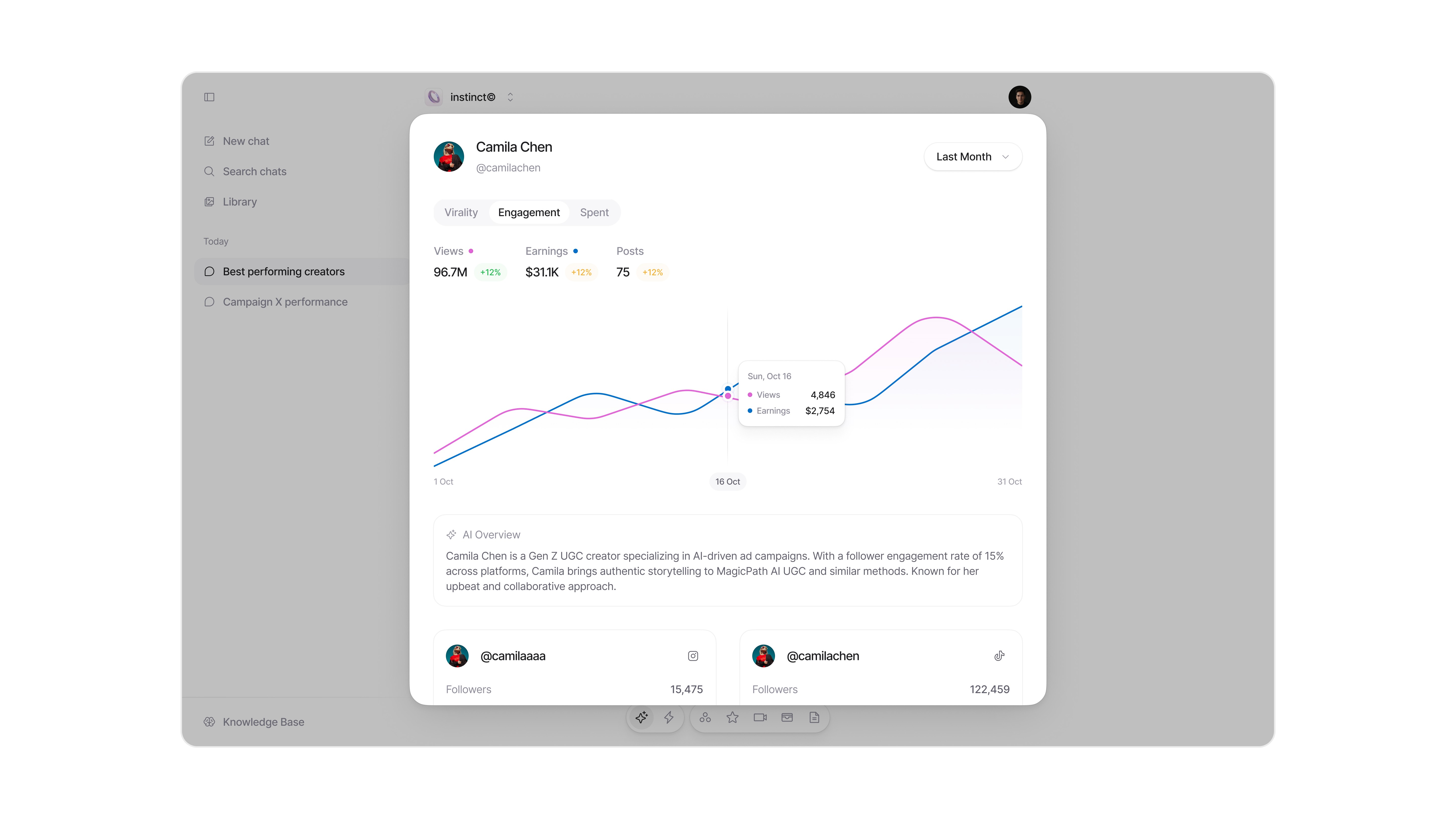 The platform scaled to over ten thousand active creators earning money through brand campaigns.