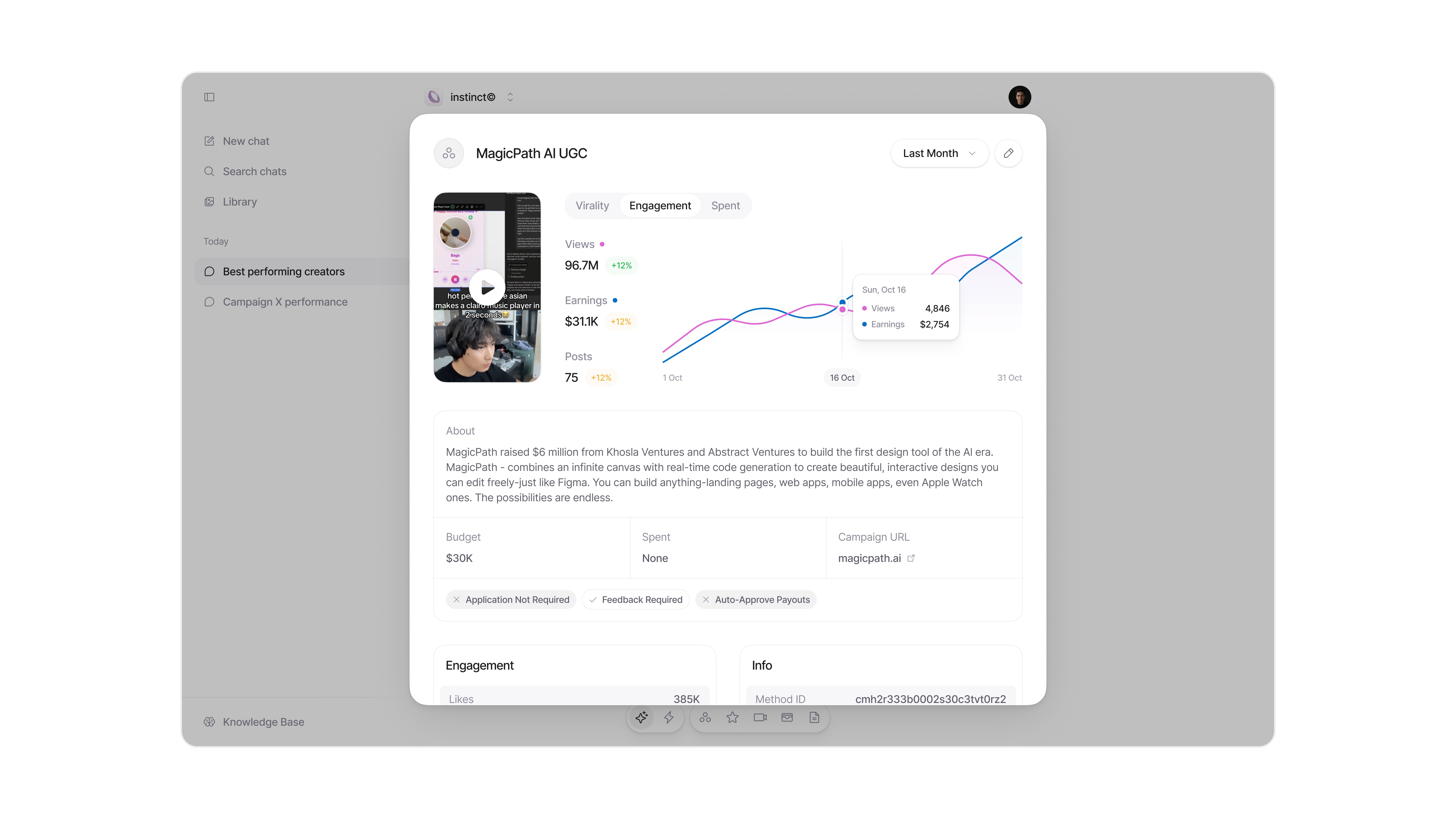 Methods is a UGC marketplace that connects brands with content creators. Brands launch campaigns, creators apply, produce short-form videos, and get paid based on performance. Methods is built by instinct©, a San Francisco-based creative company whose founders previously led the viral marketing campaigns behind Cluely, the a16z-backed AI startup that generated over a billion social media views and raised $20M+ in funding. After leaving Cluely, they launched Instinct and built Methods as their flagship product, quickly scaling it to over $1.2M ARR and becoming one of the most talked-about startups on X.